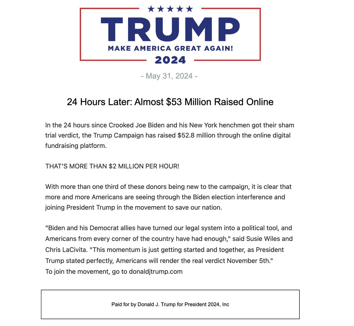 Easiest fundraising method ever: commit felony fraud.