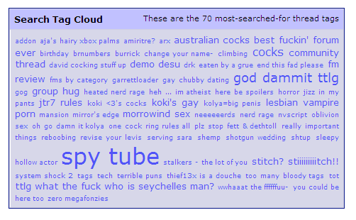 Just FYI these are not searches, just general cloud of all TTLG tags.