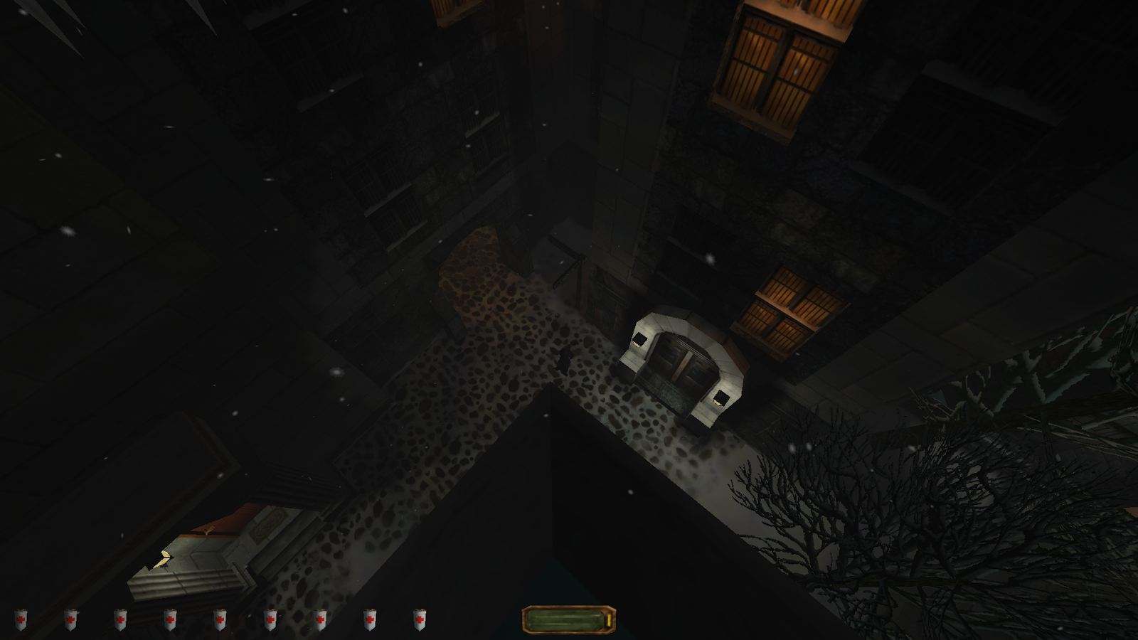 Thief-y intro cut scene you begin in a pleasant, snow-laden cityscape with complementary ambient sound and a monologue from player-character Dante. Depending on the turns you take you will soon overhear a guard conversation, voiced by the excellent Loanstar, which references the bear pits dialogue. All this lets you know you are in for a treat.