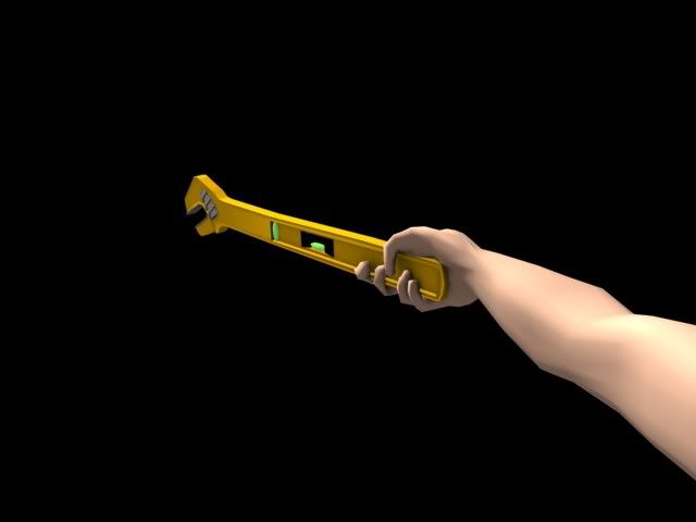 When i get into my game and select the wrench it appears as a static object attached to the camera in a stretched out position (as in the 3ds model)... What this means is i can see the arm/wrench... but if i turn 90 degrees... its stayed where it originally was and disapears off screen.
