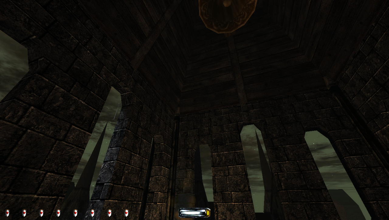 A button under the desk sends two arrows from somwhere above to a spot in front of the desk......good to lure a few guards to this spot.