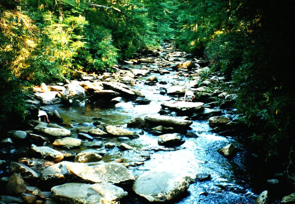 Wait a damn minute. What is the thing on the left? It also looks like somebody bending over. Is that even Alum bluff creek? Goshdamnit. Gnomes? The rocks weren't that big in comparison to what looks like arms. Is something blue on it's head? Why would somebody wear a tobagan in July? A cap surely. Nope, not Alum bluff creek. Can't be. Must have gotten mixed in. Sorry folks but it could be anywhere along the blueridge.