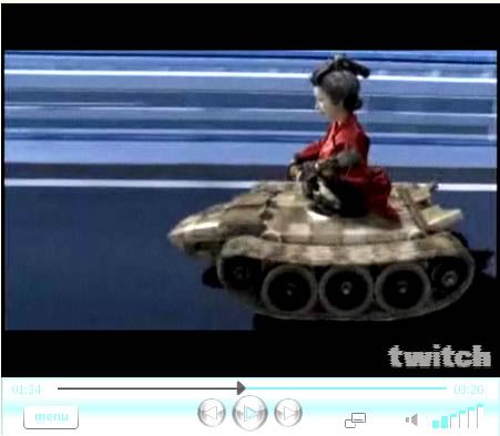 http://www.youtube.com/watch?v=rtDL5DIBmss) "hot space-pirate groupie in bunny outfit flying through the air to attack a giant hand-shaped robot in a cowboy outfit on her gasoline-powered electric guitar" scene.