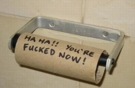I recall an act of revenge involving a high school bully, a roll of toilet paper and undiluted essence of cayenne peppers. I bet the fucking moron won't be able to sit straight till the day he pops his clogs.