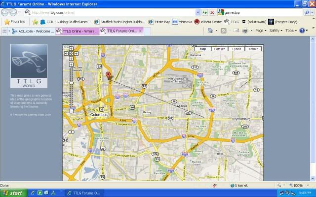Hey! Another Ohio taffer! That makes 6 (regular posters) that I know of now. Anyway, what is your ISP, Displacer? Mine is Insight, and they use Road Runner. The map shows me ~ 10 miles away, right at the Fairgrounds, and very near the middle of town. Maybe we both show up at the same location?