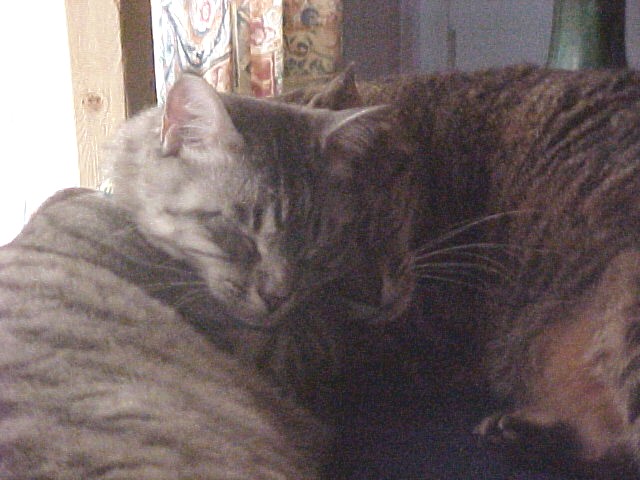 It is sad to loose them. We had to put Herman our 20 yr old cat to sleep last year. :( And, we lost 7 yr old Mercury...he just didn't wake up...a few months after Hurricane Katrina. Here is a precious pic of those two sleeping in the sun. Merky is the silver tabby on the left, Herman on the right.