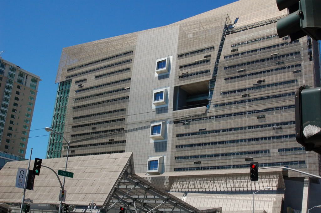 http://s48.photobucket.com/albums/f213/Fafhrd42/TTLG%20CA%20USA%202007/th_DSC_0044.jpgThe San Francisco Federal Building. It's got some really weird angles going on, and I wish I could've gotten a full shot of it in profile, because it's a pretty cool looking building.