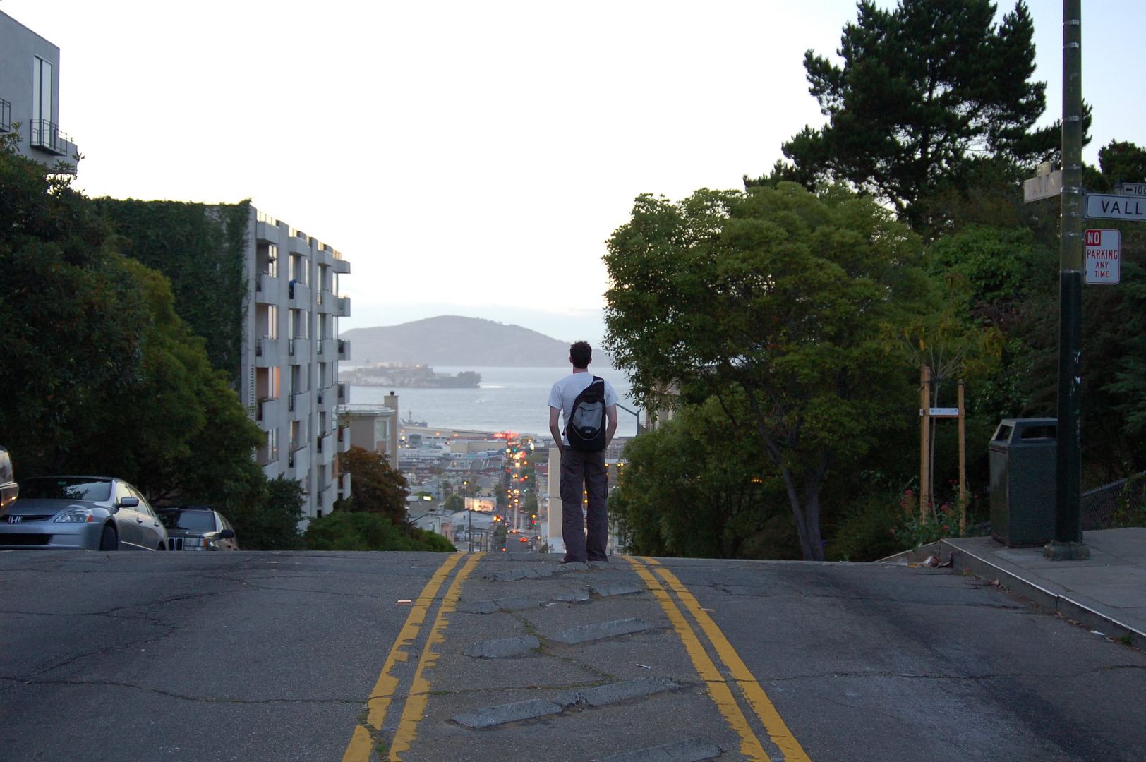 http://s48.photobucket.com/albums/f213/Fafhrd42/TTLG%20CA%20USA%202007/th_DSC_0023.jpgScots_Taffer ponders the existential horror of Nob Hill at sunset, which, at Stitch's urging, we have all just climbed. Alcatraz in the background. Honestly, my favourite shot of the evening, and not just because Scots is so fucking sexy.