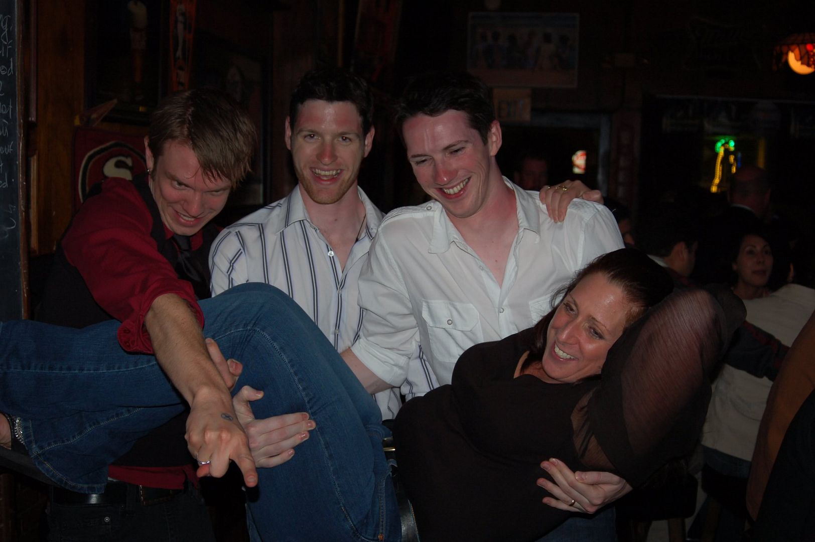 http://s48.photobucket.com/albums/f213/Fafhrd42/TTLG%20CA%20USA%202007/th_DSC_0015.jpgGhirardelli Square. GBM, Scots, Shug mostly obscured by Scots, RBJ rockin' the pink dress shirt the way that only a man who would wear a pink dress shirt can, Stitch, and RBJ's lady friend; like an asshole I have forgotten her name.