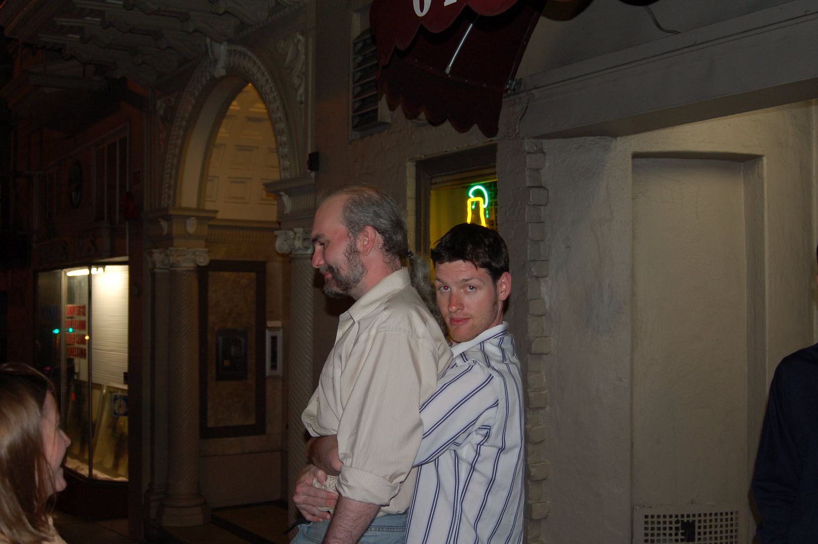 http://s48.photobucket.com/albums/f213/Fafhrd42/TTLG%20CA%20USA%202007/th_DSC_0008.jpgStitch and Daveh, (and possibly doctorfrog's nose right on the edge of frame) Fisherman's Grotto, where dinner was to be had later, in the background.