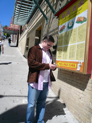 After this thoroughly enjoyable repast we walked through Chinatown to scope out a place to eat later that night. I was generally overwhelmed with the gorgeous, cluttered tackiness of it all(1), and took tons of pictures while RBJ alternated between punching things into his Blackberry(2) and complaining about the hills.