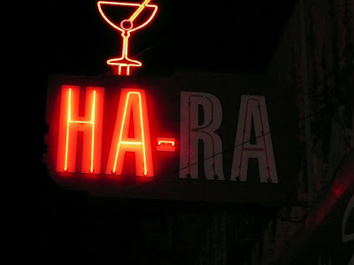 HA-RA. This place was intense. We were greeted, or abused rather, by a surly Soviet-block sounding bartender-owner-proprieter who demanded to know what we wanted to drink because he was closing. Needless to say, after one drink we were told to "fuck off" because the bar was closed, so Shug and I challenged two dudes to a game of pool and got pretty thoroughly owned by a guy who hit two amazing shots (one jump shot and another crazy side-spin shot to sink the black).