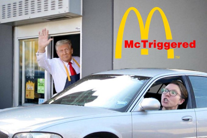 The press is clutching its pearls over one of the most normal type of campaign events: candidate eats bad food, serves bad food, and shakes hands of supporters--as though this was some trick being pulled on voters and the press...the only difference this time is that Trump genuinely likes McDonald's and isn't faking an affection for some common man ritual like eating pork rinds or going duck hunting, and of course he is doing it to poke fun at Kamala's claim she worked at a McDonald's once (for which she can provide no evidence), which like everything else on her resume she seems to have done in a Xanax/alcohol fueled haze.