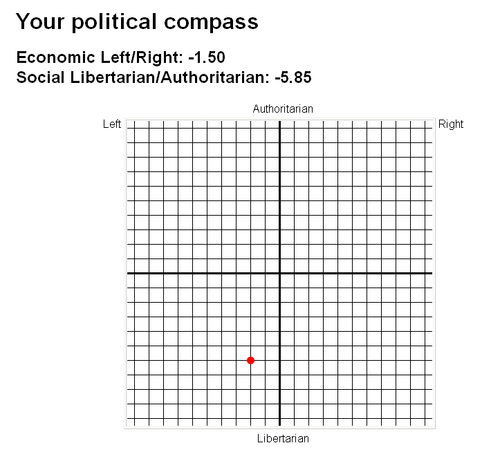 http://www.politicalcompass.org/) two axis thing is a bit closer to the way things are, but most (social) liberals are also pretty liberal on the economic thing too. My party is pretty much central on the economic axis ((