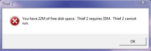 http://i857.photobucket.com/albums/ab140/nickdablin2009/35Mb.jpgLOL! I have over 500Gb free! This is not a serious one, but sometimes has happened for me if I load a mission in Dromed having just quit running Thief 2 through Darkloader. Usually clears up pretty quickly; certainly after a restart.