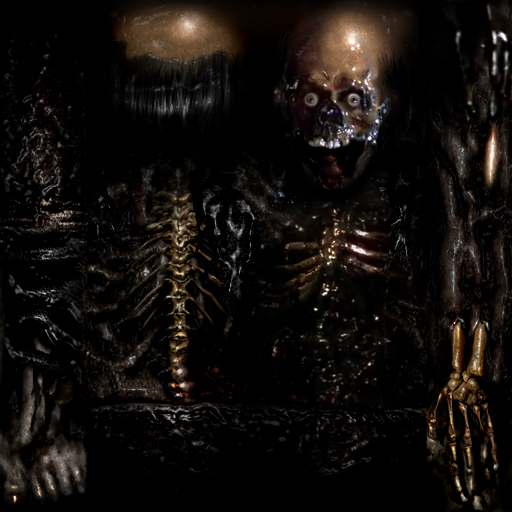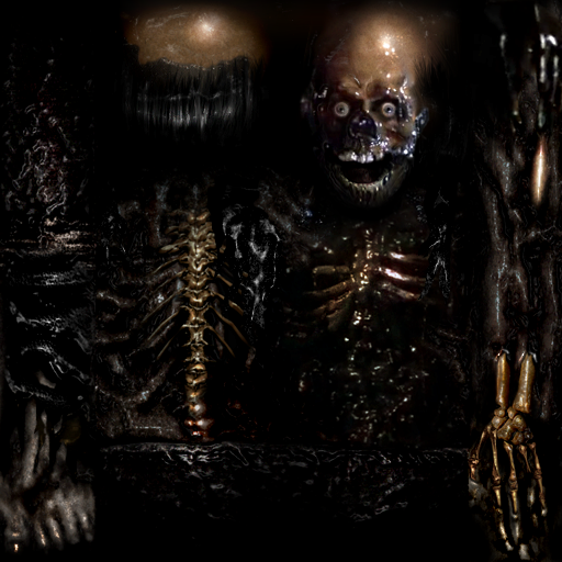 I'm not too pleased with some of the compromises I had to make to get the skin to fit the model -such as having to give him a bit of hair- but some others worked out surprisingly well. Since the model doesn't have a jaw, the one in the skin is fused into the model's neck and, coupled with the skin's darkness, gives an illusion of an independently moving jaw when the zombie lurches around. The way it sometimes