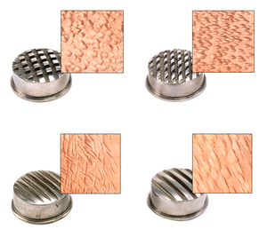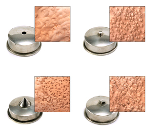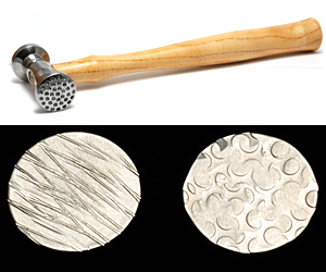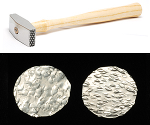 Seriously? That first one is clearly the output of a texture generator, which some clueless person decided to label "hammered metal". The second one, also clearly not a photograph, is even worse. Looks more like pebbles than metal.