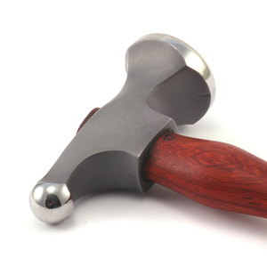 Unfortunately like a lot of modern fake hammered metal sheets, this looks like a sheet of metal was run through a metal press with a hammered metal form rather than actually hammered. You can see what real hammered metal looks like if you look at some hand crafted jewelry. Note how the indentations are shallower and more irregular in shape. This is still decorative hammering, but it was, at least, created by actual hammering. If the the texture is intended as a merely decorative hammered metal, then all bets are off, but if the hammering is intended to be seen as having been manually done and integral to the actual forming of the metal, then more random, less uniform, and less overdone indentations should be considered.