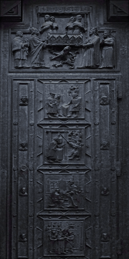 Unfortunately, all sources I could find were either lo-res, at an angle or both, so 256*512 is as good as it gets for now. Purgator, mind having a look? It's one of the doors on St Vitus cathedral, and I used Google Image Search (can't really think of what else, tbh. I'm borderline computer illiterate, as strange as that may sound coming from a digital texture artist).