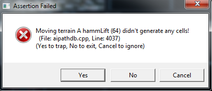 I've made sure the TerrPts are all linked and placed properly, and that there's nothing obstructing the elevator. I ran pathfinding again, and now the elevator isn't moving at all. When I ran pathfinding, it came up with an error message saying the lift didn't generate any cells. Don't exactly know what that means, but maybe that has to do with the problem?
