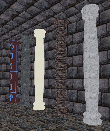 Also, what about (in addition to the excellent object you've already created!) a simple cylinder with no variation in width from top to bottom, and a replacable texture. That would let us size it as necessary, and use it in a variety of different situations -- maybe not even as a column, but alternately as a large pipe (if we need one that's larger and smoother). Other situations would likely present themselves as well.