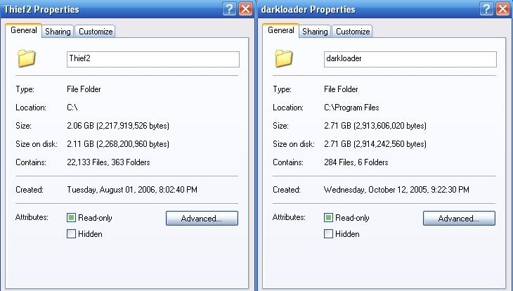 My actual game directories with FMs are not too big - TG is 1.78 GB; T2 is 9.08 GB; T3 is 3.58 GB - for a total of 14.44 GB. And there are multiple installs of T2 for betas so that's another 7.02 GB. And GarrettLoader & Darkloader add 46.84 GB.