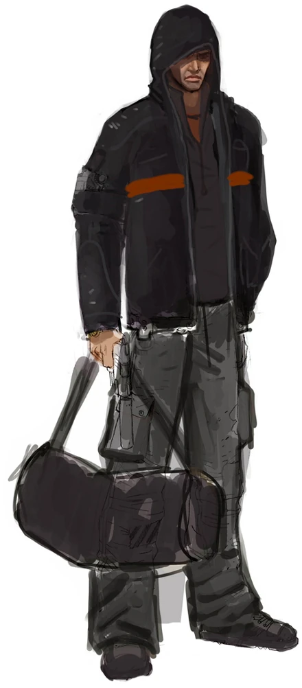 When the guards finally lost the trail, they didn’t find the spool, but laying in the north hall were five water arrow crystals, a short sword, a blackjack, a flashbomb, and a pile of black clothes complete with boots, boxers, and cloak, sitting in a slowly congealing pool of orange slime.