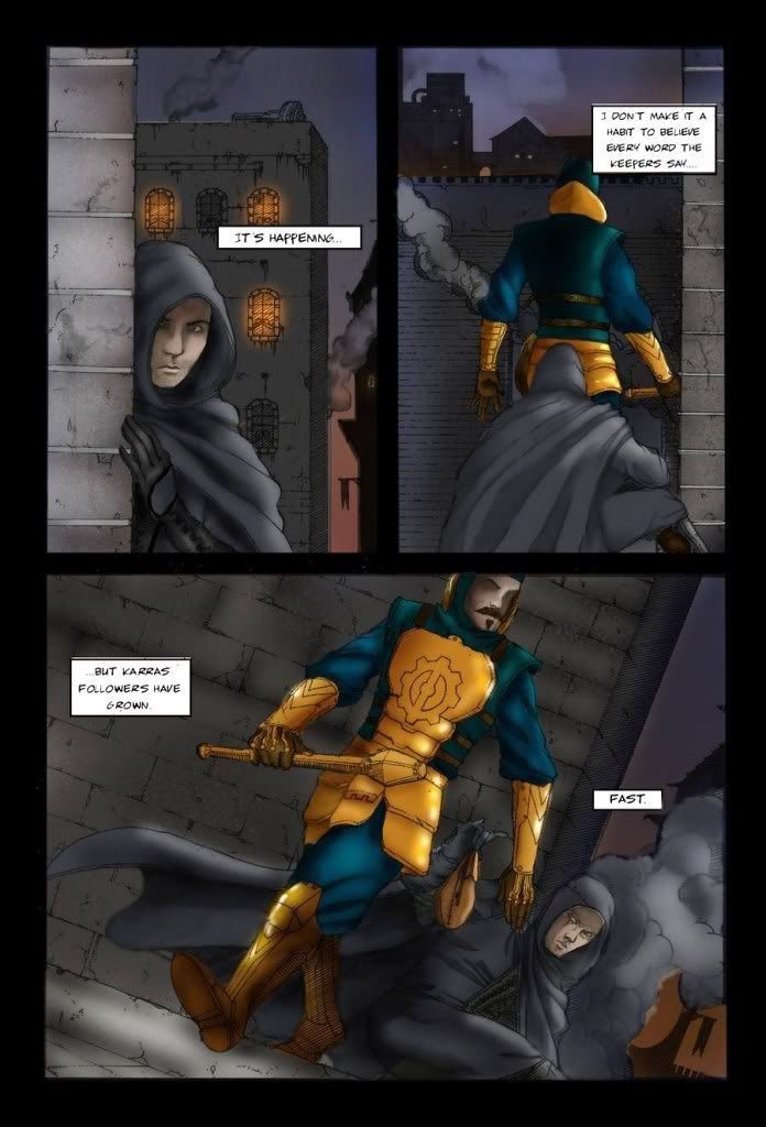 Really good, especially the image with the Mechanist walking away. :thumb: I think it could even be a bit grittier... maybe that's also what you mean with "pulp comics", I'm not familiar with that genre.