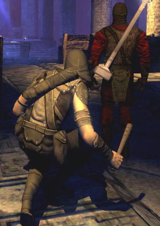 I pretty much followed a trail of my stuff up to the hammer's little temple thing, where I found my sword, and some of my looted loot floating in midair. Appearently, my equipment has been "dripping" off me and hanging in midair for the past few minutes. I'm still trying to find a couple of things, including my blackjack.