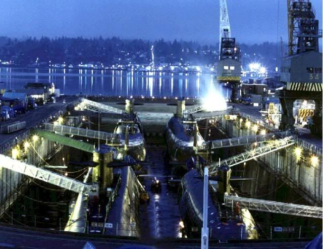 http://i1146.photobucket.com/albums/o531/bedwine/4SubsInDryDock_jpg.jpgPSNS looking to the south at Port Orchard Washington. When the work is done on these subs you could take a white glove to any surface of the interior of the reactor compartment. The torpedo room is another matter. I am retired now, 62 going on 12. DarthsLair has probably driven past this place a few times.