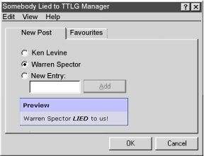 He made no contribution worth considering.Goldmoon Dawn, discussing general background, not Thief 3: "Warren Spector has done a few interviews." ["and nothing else]